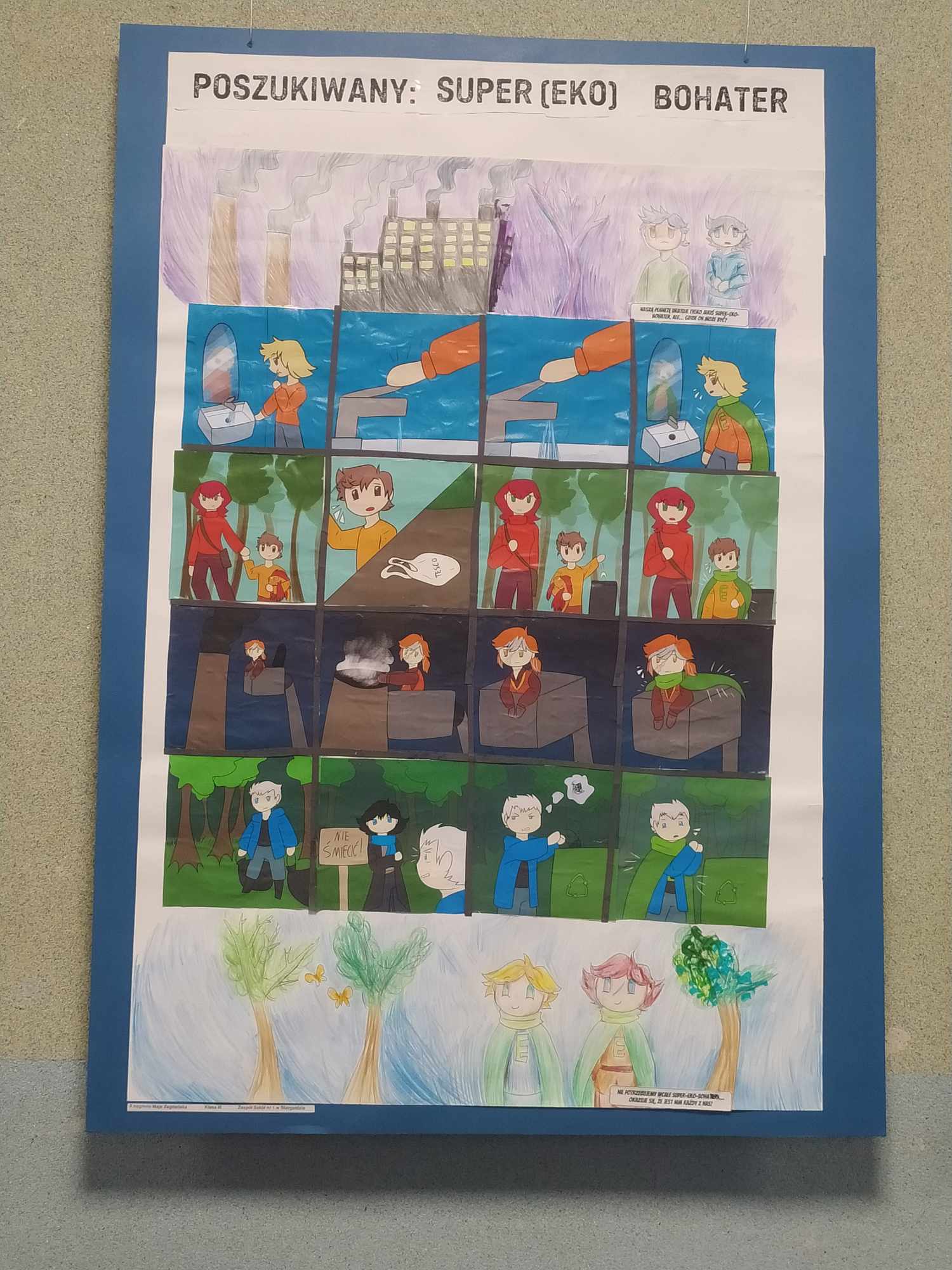 Miło nam poinformować, że praca Mai Zagdańskiej z klasy III TG pt. „POSZUKIWANY: SUPER [EKO] BOHATER”, zgłoszona przez naszą szkołę do powiatowego konkursu na komiks „Ratujmy naszą planetę – komiks o superEKObohaterze”, w kategorii szkół ponadpodstawowych zajęła drugie miejsce , a praca Izabeli Gazdy z klasy IVTH „BĄDŹ SUPEREKOBOHATEREM!” trzecie miejsce.