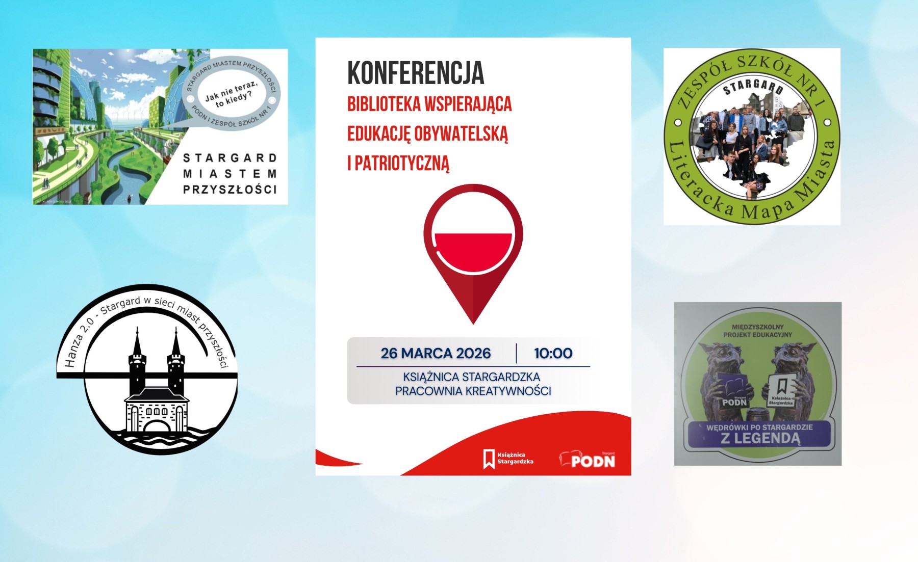 26 marca 2026 r. uczniowie klasy III TI — Oskar Zwolak, Maksym Urban i Szymon Stanisławski — wraz z Panią Ireną Zalewską, współorganizatorką wydarzenia, reprezentowali Zespół Szkół nr 1 podczas Powiatowej Konferencji Bibliotekarzy w Książnicy Stargardzkiej.