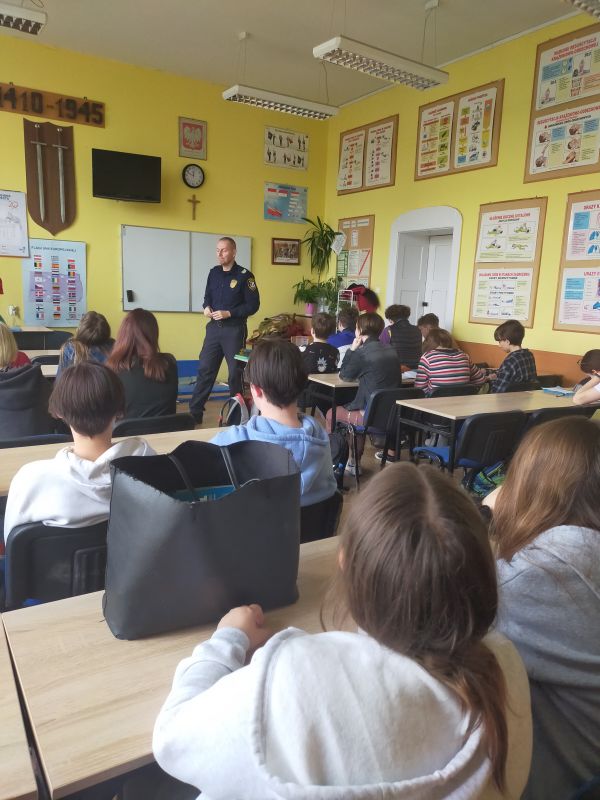 Powadzone w ramach współpracy ze Strażą Miejską w Stargardzie spotkaniaz zakresu profilaktyki przybliżają młodzieży informacje o odpowiedzialności prawnej nieletnich, czyli konsekwencjach prawnych jakie ponoszą nieletni kiedy wejdą w konflikt z prawem. W trakcie zajęć omówiono konsekwencje popełniania czynów zabronionych i przestępstw, takich jak: kradzież, rozbój, włamanie, spożywanie alkoholu i środków psychoaktywnych( również dopalaczy), palenie papierosów . Przypomniano młodzieży o systematycznym uczęszczaniu do szkoły, ponieważ wagary i nierealizowanie obowiązku szkolnego przez nieletniego również podlegają postępowaniu przed sądem. Uczniowie dowiedzieli się również, że umieszczenie wizerunku osoby w celu jej ośmieszenia, np. na stronie internetowej, na blogu, w serwisie społecznościowym, rozesłanie e-mailem lub przez telefon komórkowy, jak również umieszczanie w internecie lub przesyłanie drogą e-mailową, przy użyciu komunikatorów, serwisów społecznościowych, telefonu komórkowego itp. obrażających kogoś treści i opinii podlega odpowiedzialności karnej .Te same przepisy dotyczą tworzenia kompromitujących i ośmieszających stron internetowych, blogów, fałszywych kont i profili w serwisach społecznościowych. Funkcjonariusz uświadomiłuczniom jaki wpływ ma popełnienie czynu zabronionego na ich dalsze, dorosłe życie.