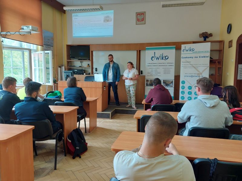 16 maja 2022 roku odbyło się spotkanie przedstawicieli firmy Elwiko, Pani Doroty Kocoń- Specjalistą ds. sprzedaży i marketingu i Pana Bartłomieja Duli – kierownika sprzedaży, z uczniami klasy 3 Z i 3 Zg Szkoły Branżowej.