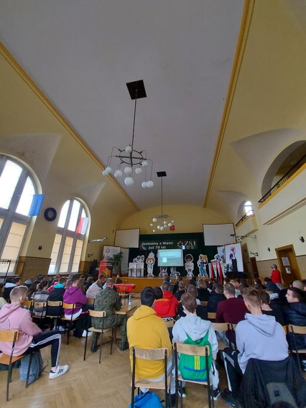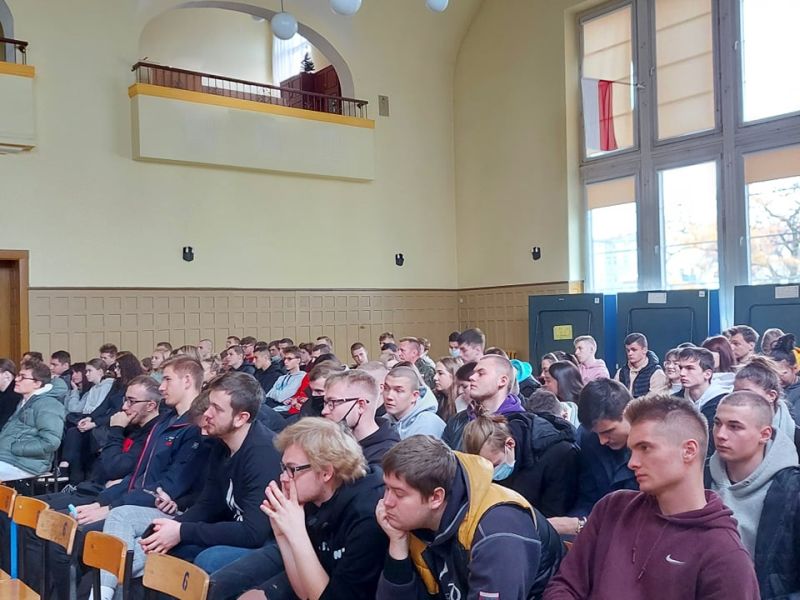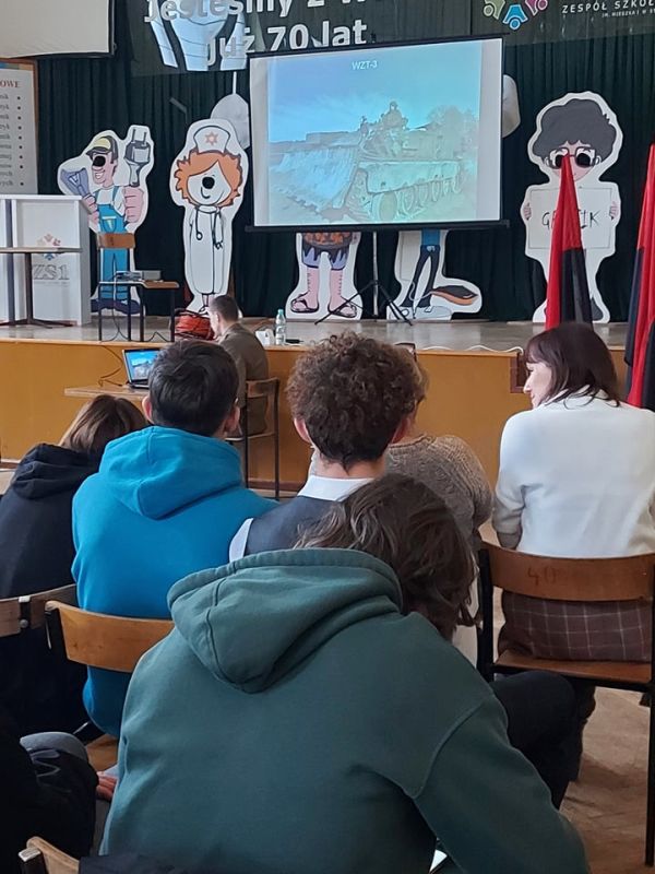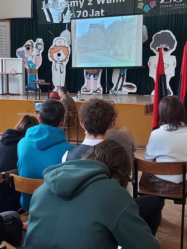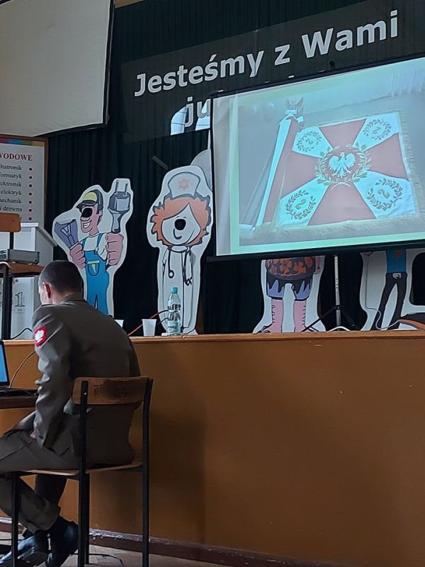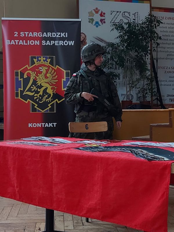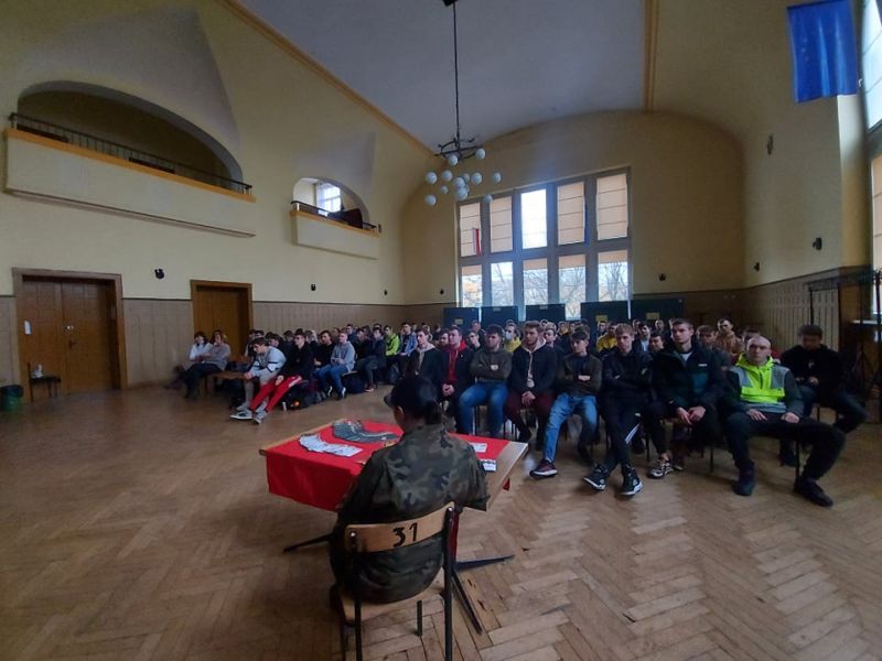PODCZAS WIZYTY PRZEDSTAWIONO UCZNIOM HISTORIĘ POWSTANIA CZERWONYCH KOSZAR, A TAKŻE CHARAKTERYSTYKĘ SŁUŻBY ŻOŁNIERZA NA BAZIE 2. STARGARDZKIEGO BATALIONU SAPERÓW, ABY ZASZCZEPIĆ W MŁODZIEŻY CHĘĆ WSTĄPIENIA W SZEREGI WOJSKA POLSKIEGO.